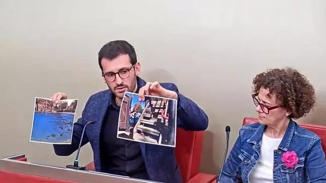Jordi Cuadras mostrant l'estat dels parcs infantils d'Igualada al ple municipal / Arxiu particular