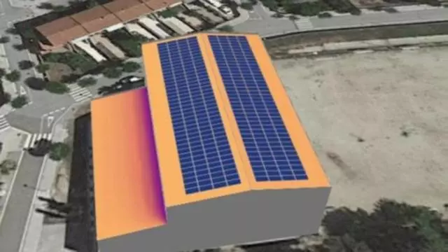 Recreació digital de com quedaran les plaques fotovoltàiques instal·lades al poliesportiu / Ajuntament de Vallbona d'Anoia