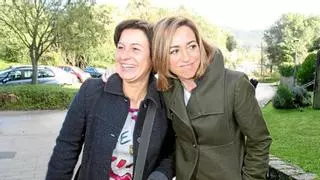 Eulàlia Lluch i Carme Chacón, abraçades a la foto, van recordar ahir l'històric dirigent socialista / acn