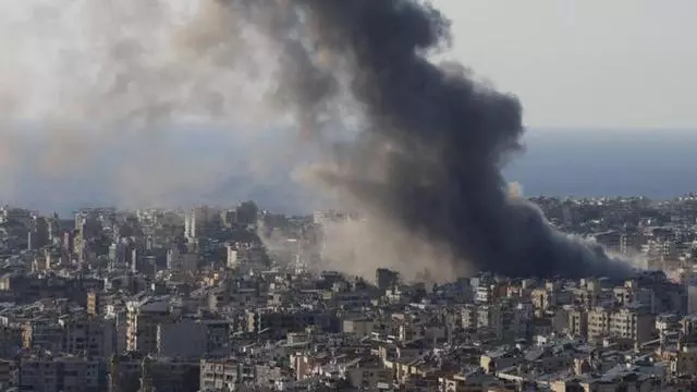 Columnes de fum, ahir a Beirut, després de l’atac israelià. | WAEL HAMZEH / EFE / WAEL HAMZEH