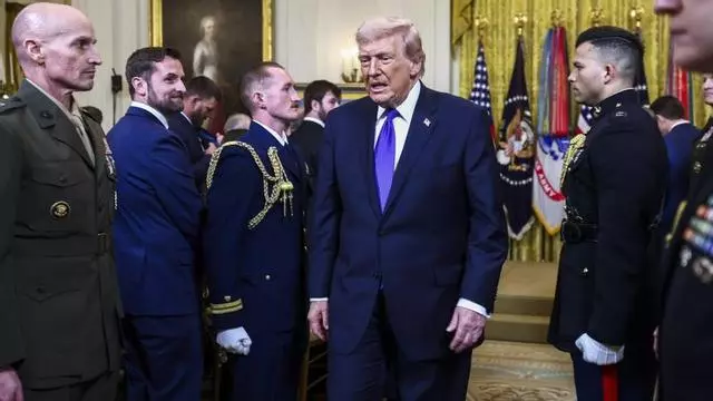 Donald Trump en l’entrega de medalles d’honor a veterans de guerra, ahir a la Casa Blanca. | JIM LO SCALZO / EFE