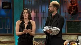 La trobada va continuar amb un torcebraç entre convidada i presentador, que va guanyar Rosalía ("S’ha deixat!", va exclamar la motomami). Després l’artista va cantar un vers a cappella de La perla, la cançó que s’ha convertit en el gran èxit del disc i la lletra de la qual molts atribueixen a la seva relació amb Rauw Alejandro ("Un terrorista emocional, el mayor desastre mundial"). Això, sí, ella no va concretar: "No hi ha només una perla. En general, en la vida, tots en coneixem més d’un".