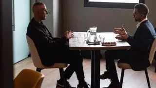 Un moment de la conversa entre el director de Regió7, Josep Lluís Micó, i el president del Consell, Eloi Hernàndez al restaurant de Manresa Möm / Oscar Bayona