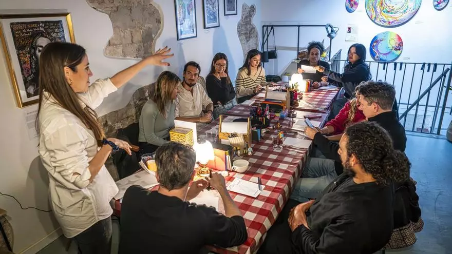 Avui hi ha una desena de persones al voltant de la taula de jocs. De Barcelona, l’Argentina, Colòmbia, Chicago. N’hi caben 12 com a màxim. "Que sigui petit –apunta la Marta– ajuda força a connectar". De seguida es crea ambient de club clandestí. Es fan confidències amb dibuixos infantils. Es comparteixen rotus i tisores com a la guarderia. "És el que tots busquem –esbufega en Cristian–: espais de connexió humana". Ho sap prou bé: una vegada al mes, anima algú qualsevol a pujar a un escenari a explicar històries personals. Un Sálvame Deluxe anònim: @storytellingbarcelona. El tema de febrer serà l’amor. Dia 25, al Noa Noa (Villarroel, 71).