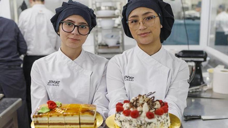 L’aroma dolça delata de seguida quina és l’aula de pastisseria de l’Escola d’Hoteleria de la Joviat. En una de les cuines de l’escola, un grup d’alumnes vestits amb uniforme i gorra blanca treballen concentrats, mentre donen forma a petits pastissos de colors en forma de cor per a Sant Valentí. És una de les moltes elaboracions que practiquen al llarg de dos cursos que els donen la base per entrar a treballar en una pastisseria, encarregar-se de les postres d’un restaurant o especialitzar-se en el món de la xocolateria.