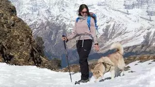 La solsonina Gemma Colell amb el seu gos a l'Himàlaia indi, en un punt que està a tocar de casa seva / Arxiu Particular